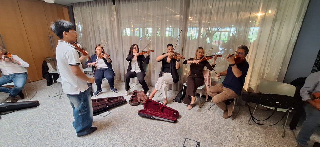 La orquesta se convirtió así en un reflejo vivo de cómo funcionan los equipos cuando hay escucha y propósito común. Cada instrumento encontró su lugar, cada persona su espacio, y juntas lograron construir algo que solo existe cuando se hace en colectivo.